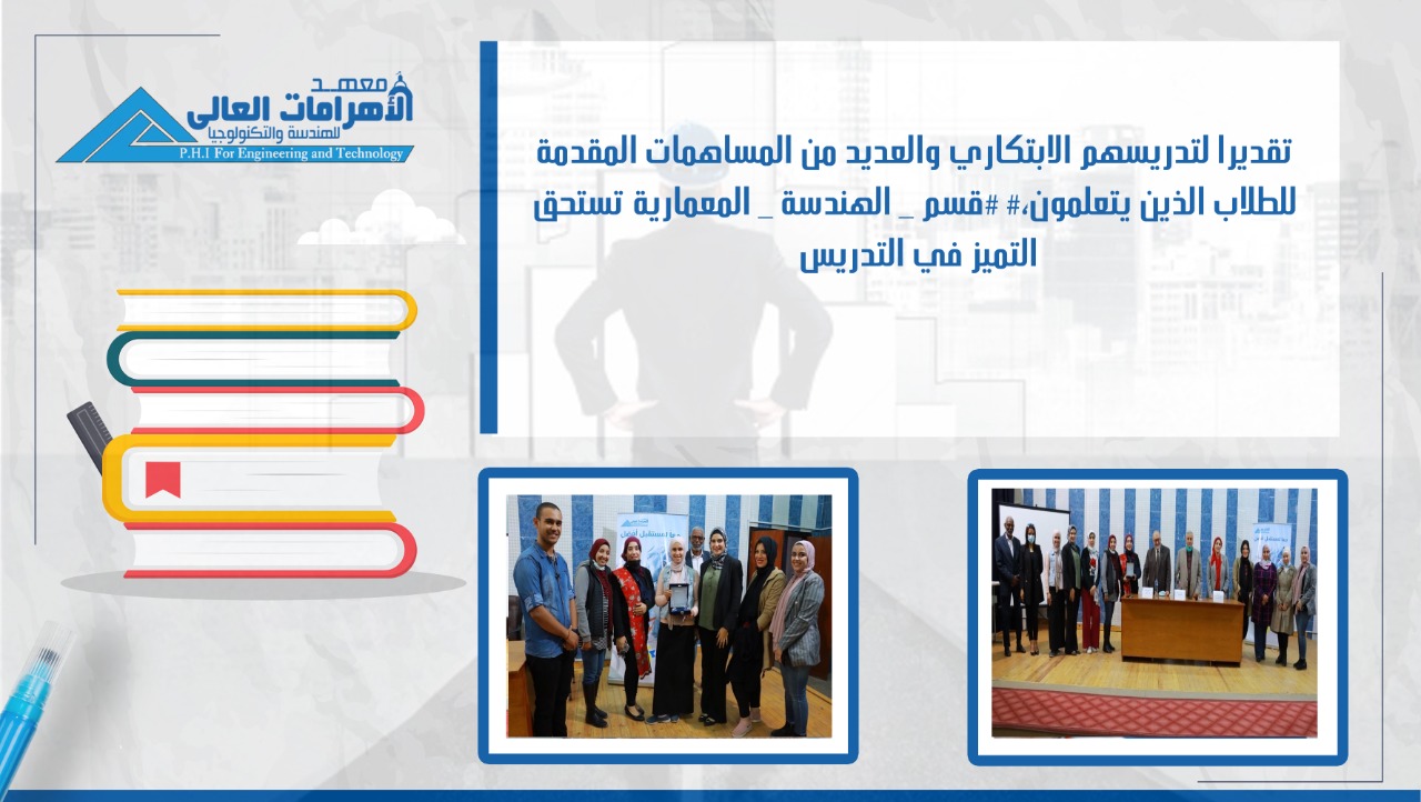 تقديرا لتدريسهم الابتكاري والعديد من المساهمات المقدمة للطلاب الذين يتعلمون،# #قسم _ الهندسة _ المعمارية تستحق التميز في التدريس.