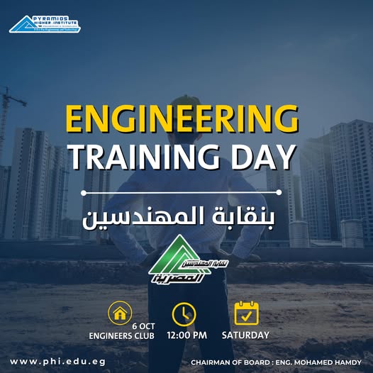 يسعد الأهرامات للهندسة المشاركة في فاعليات يوم تدريب المهندس بنادي المهندسين 6 اكتوبر 👷♂ تحت #رعاية_نقابة المهندسين بالجيزة وذلك يوم السبت الموافق 26 اكتوبر 2024 في تمام الساعة 12 ظهراً