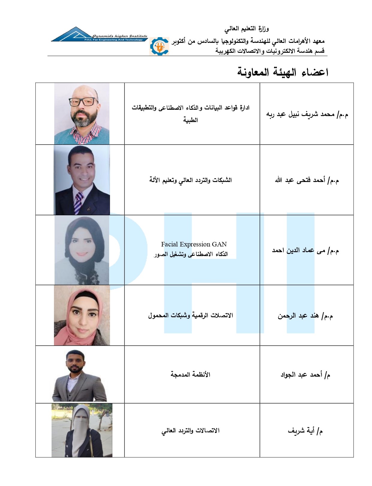 · مشاركة عدد من أعضاء هيئة التدريس والهيئة المعاونة المتميزة من أقسام المعهد المختلفة من أصحاب الخبرات العلمية والعملية المتميزة.