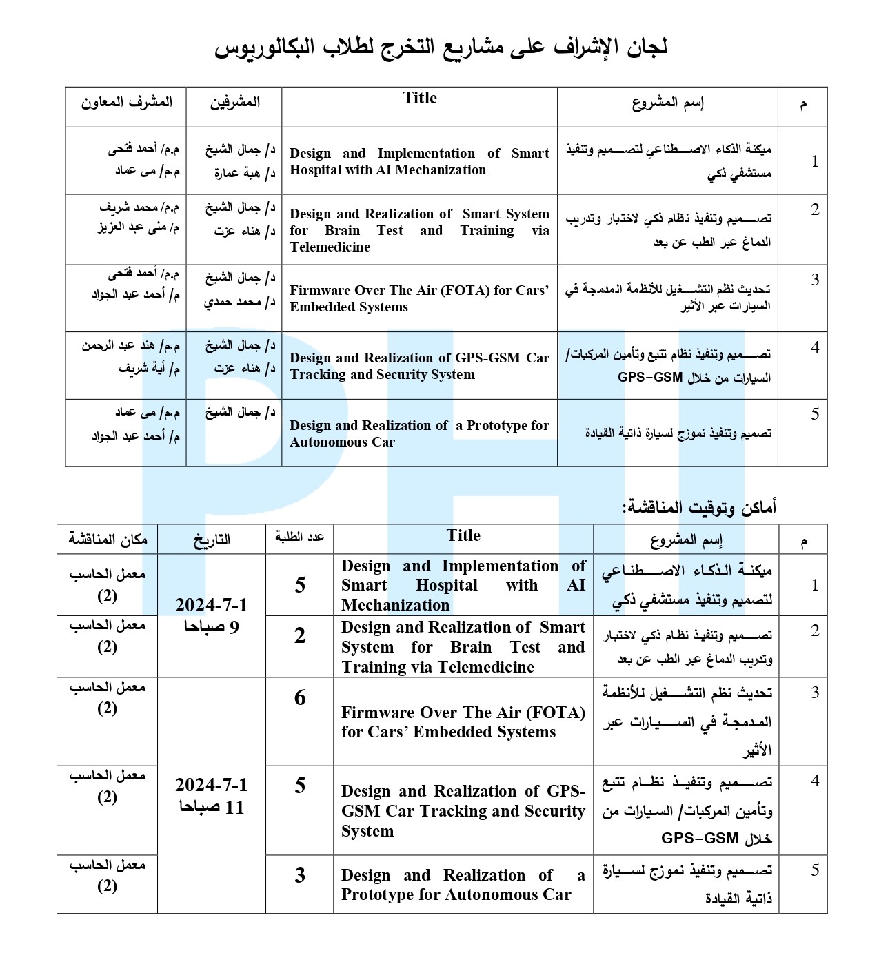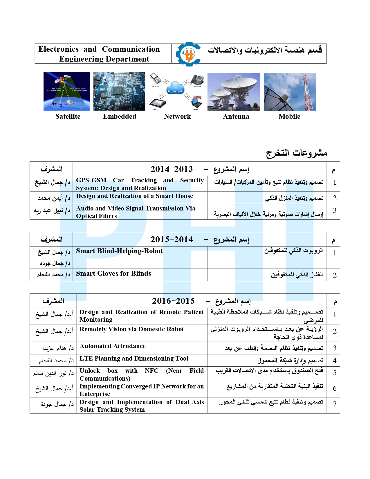 الاعزاء طلاب وطالبات قسم هندسة الالكترونيات والاتصالات الكهربية بمعهد