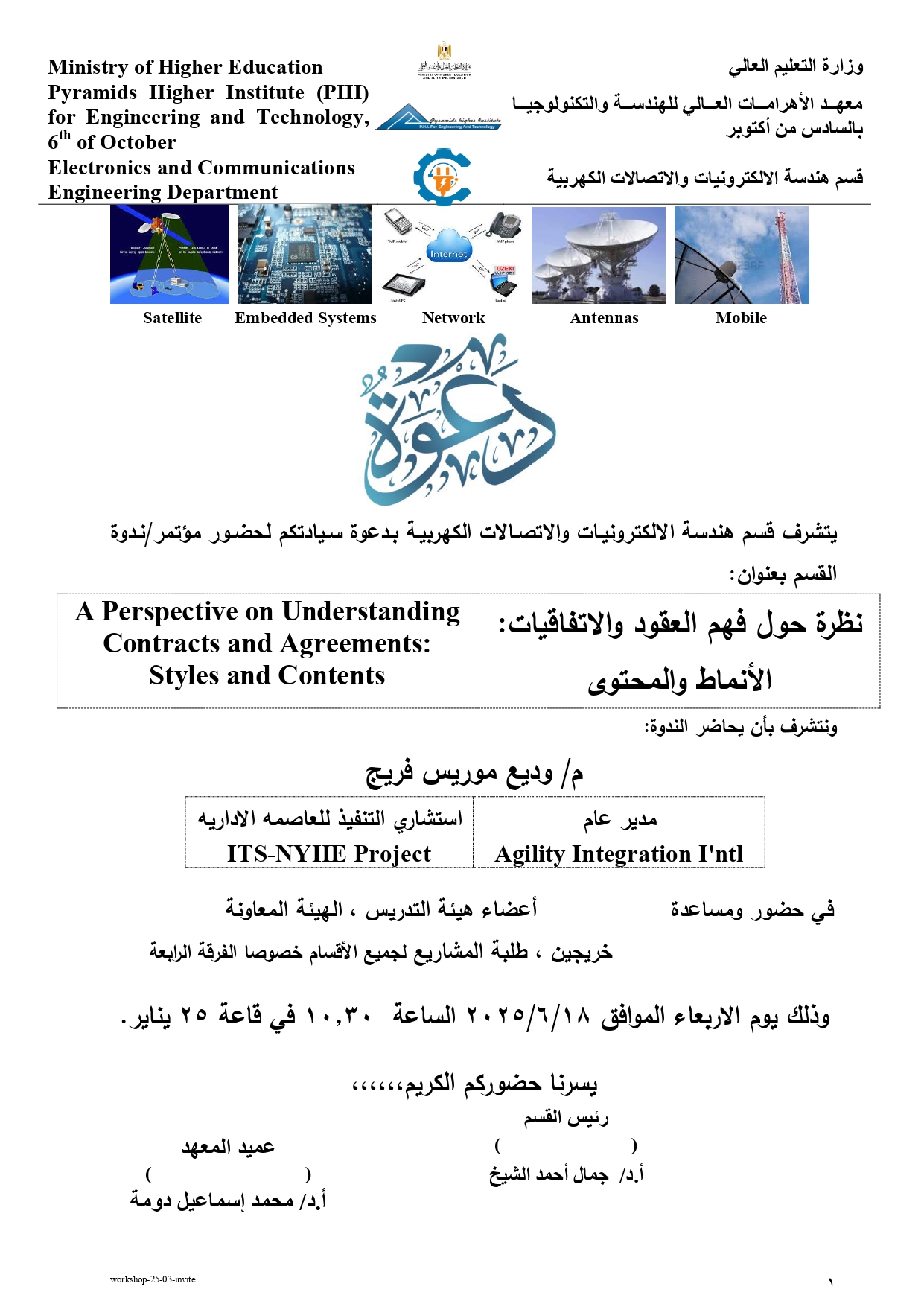 بالقضايا الهندسية والإشكاليات بالاتصالات المعاصرة ، واحترام أخلاقيات المهنة ،