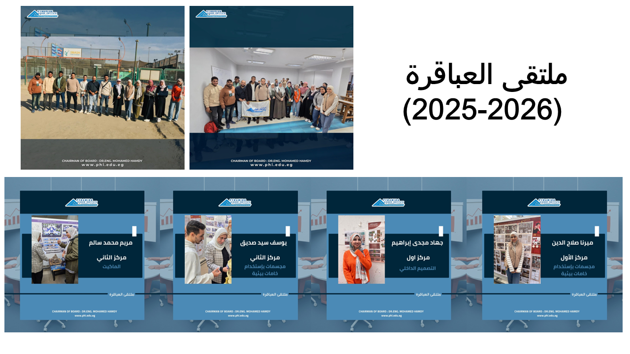 يُعلن قسم الهندسة المعمارية بـ معهد الأهرامات العالي للهندسة والتكنولوجيا، وضمن فاعليات اليوم العلمي، عن إطلاق مسابقة تفاعلية متميزة تهدف إلى تعزيز التجربة التعليمية الواقعية للطلاب جنبًا إلى جنب مع السياق النظري للدراسة، وترسيخ الشعور بالانتماء لدى الطلاب والخريجين من خلال مشروعات حقيقية قابلة للتنفيذ داخل حرم المعهد. مسار المسابقة: